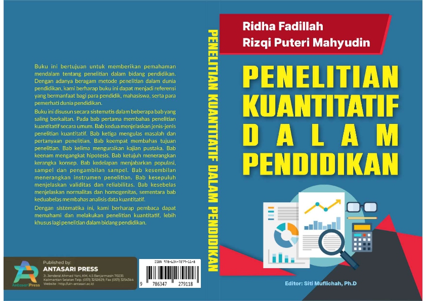 Buku Penelitian Kuantitatif dalam Pendidikan disusun sebagai panduan komprehensif bagi mahasiswa, dosen, dan peneliti pendidikan dalam memahami serta menerapkan pendekatan penelitian kuantitatif secara sistematis dan aplikatif. Buku ini menjelaskan konsep dasar, metodologi, dan prosedur analisis yang menjadi fondasi penelitian berbasis data numerik. Diawali dengan pemahaman tentang definisi dan karakteristik penelitian kuantitatif, buku ini kemudian menguraikan berbagai jenis penelitian seperti deskriptif, korelasional, eksperimen, dan ex-post facto, serta tahapan-tahapan penelitian mulai dari perumusan masalah, penyusunan hipotesis, kerangka konsep, hingga analisis data.
