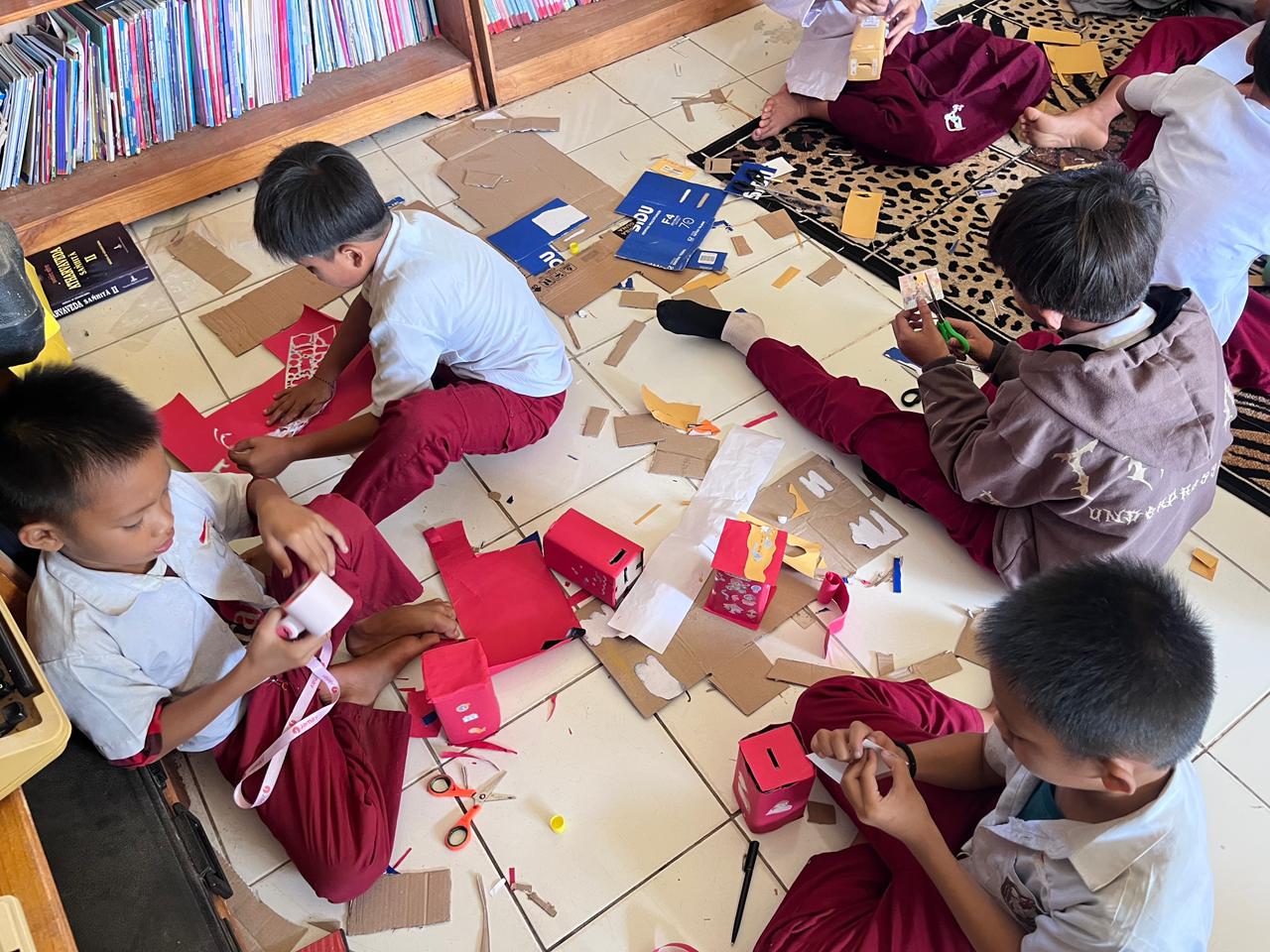 Siswa dibagi menjadi beberapa kelompok kecil berdasarkan kelas, dan masing-masing kelompok membuat tabungan unik dari bahan karton serta kardus bekas. Selama kegiatan berlangsung, adik-adik sangat antusias dan bersemangat dalam menghias tabungan mereka, sambil mendengarkan penjelasan dari mahasiswa KKN tentang pentingnya menabung dan mengelola uang dengan bijak.